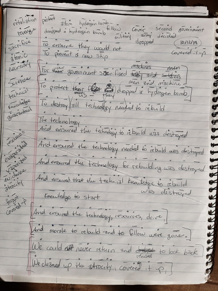 Near the Milky Way’s center, two centuries out, An historian found the records of departure from Earth. Some were documents, others were voice logs, and one, The most chilling of all, where breath stopped and blood froze, Was security footage of a massacre. We were chosen by lottery, but on the wrong side of war. On the night before launch when supplies were aboard And the crew and civilians asleep in their beds, We attacked with diversions and bombs, EMPs, And superior numbers and ruthless intent. They were caught by surprise and were murdered in bed With their families. All were replaced to a child. As The Phoenix’s Nest, the personified hope That humanity rise from the ashes of war, Rose above the combatants to flee into space, It was stained with the blood of three thousand and ten. We ejected the bodies in orbit, then left Behind Earth and our war and became refugees. For the government sacrificed men and machines To protect us and dropped a hydrogen bomb To ensure the technology, resources, drive, And morale to rebuild and to follow were gone. We could never return and refused to go back. We cleaned up the atrocity, covered it up, And pretended as if we were always the ones They intended to pilot The Phoenix’s Nest.