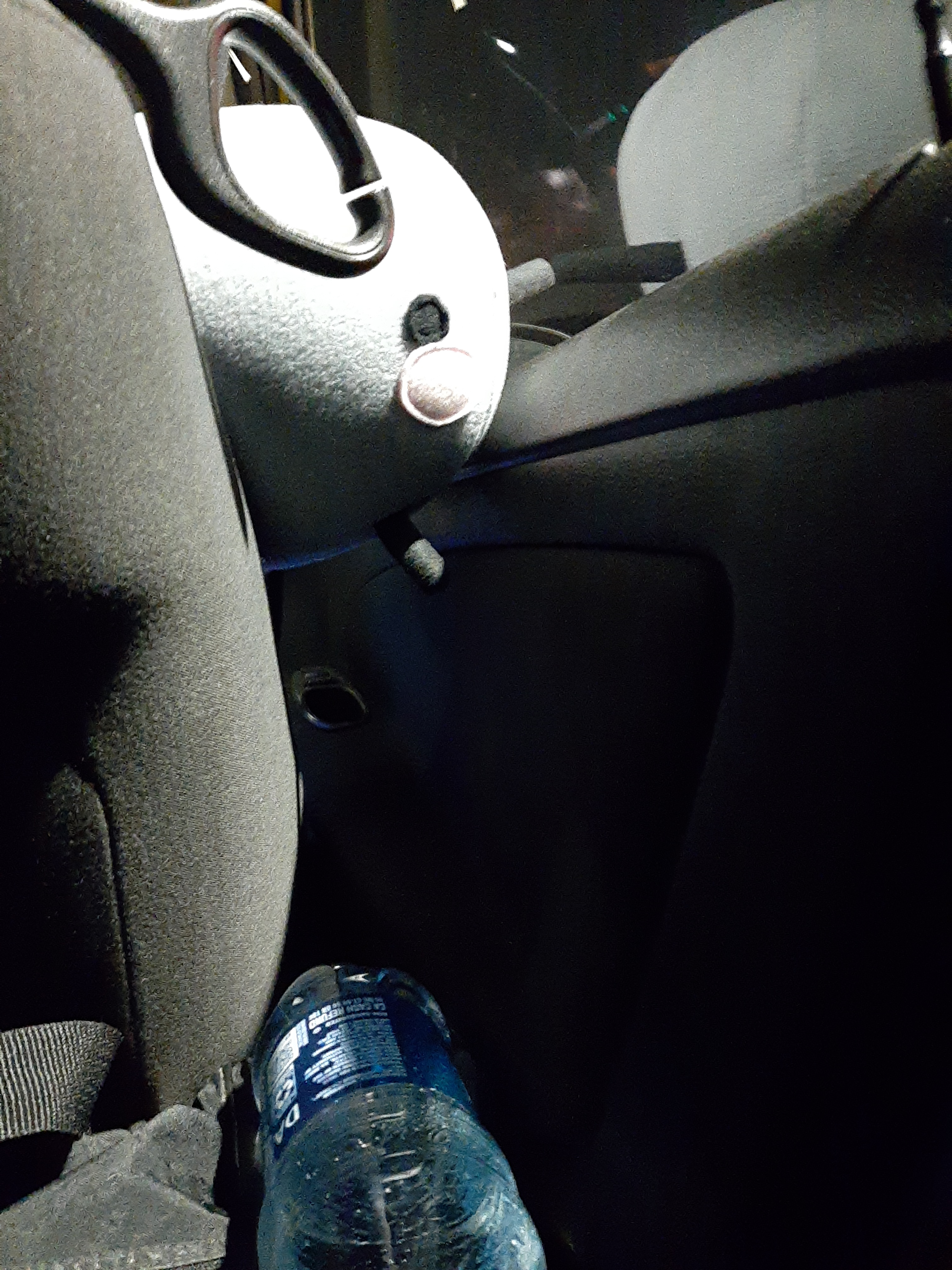 The inside of my car at the Bosselman Truck Stop. My junimo friend bounced around the car.