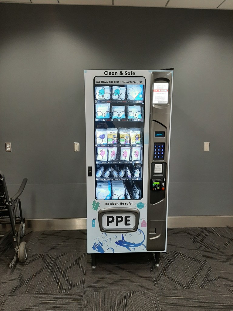 I’d gotten up at 2 AM to make it to the airport, so I had to convince myself I wasn’t hallucinating a PPE vending machine. I chose to find its existence humorous rather than dark or scary, and hey, the hand sanitizer bottles small enough to pass security will run out, or your kid will squeeze it all out on the floor, or you’ll forget yours. Then this machine is no longer an amusing novelty item – it’s a necessity.