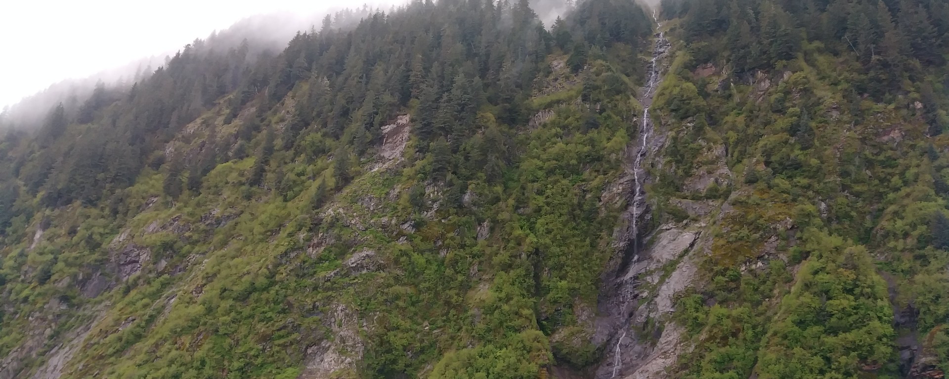 Along the dramatic coast, rocky slopes plummeted to the sea. To shield the interior from prying eyes, a wall of evergreens, proud and straight despite the bitter sea winds, grew closely spaced, branches intertwining and needles crossing with those from two trees away. Where the trees could not reach any higher, the clouds descended to caress their branches, filling the voids and cracks with white vapor. Occasionally, this wall of rock, tree, and cloud would be adorned with a single strand of water draped over outcrops and hiding in hollows as it descended to the sea below, leaving behind one mystery to join another. Little was known of the interior – save that it existed – and any who may have tried to pierce it probably didn’t return. Probably, because no one was reckless enough to try, and those who were weren’t the type to leave behind a note of their intentions. Probably, because no one ever claimed to have gone and come back. The land beyond the dramatic green coast gripped its secrets like a tree’s roots growing in the cracks and crevices of a shear rocky slope.