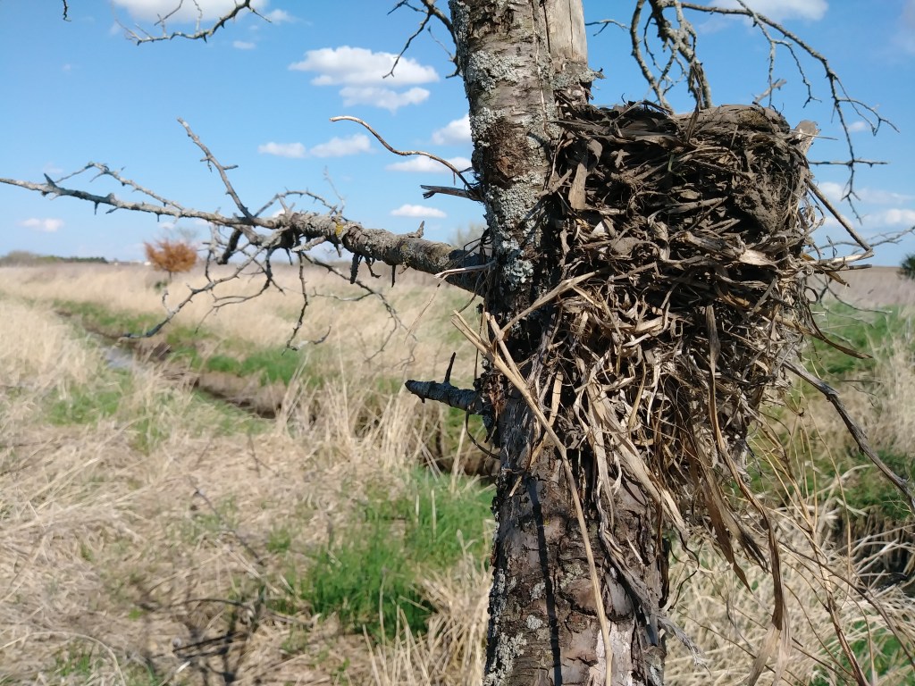 I saw a nest at eye level in the juncture of a scrawny tree that stood alone on the bank of a stream. Lovingly made of grass and twigs and mud, its solid foundation where four thin branches diverged was undermined by its full exposure to the wind and its proximity to the ground. Perhaps these drawbacks were why the nest was unoccupied. Perhaps its inhabitants were preyed upon by local raccoons or opossums. Maybe the wind and rain drove them away. Or, maybe, the nest had already served its purpose by the time my path stumbled by. Though one would expect trees to be green in May, perhaps this young one had once been full of leaves. Maybe an inexperienced couple had chosen this tree, unaware of the hazards of living so close to the ground. Whatever the reason, the nest was now empty and silently remembering the ghosts of the lives it once held, like the small, gray, weather-beaten, empty shells of homes one can still see in the Midwest, the High Plains, the Desert West. Often askew, one wonders if time or the wind or both are to blame for their acute relationship with the ground. The wind enters these corporeal memories through cracks or missing windows and doors, swirls around the ghosts still present, steals the words from their lips, and scatters them across the landscape so “hello” is separated from “there” by thirty miles. Empty, forgotten, abandoned. The assumption is failure, but that is often based on unfounded imaginings rather than reality, which is rarely as simple as we’d like.