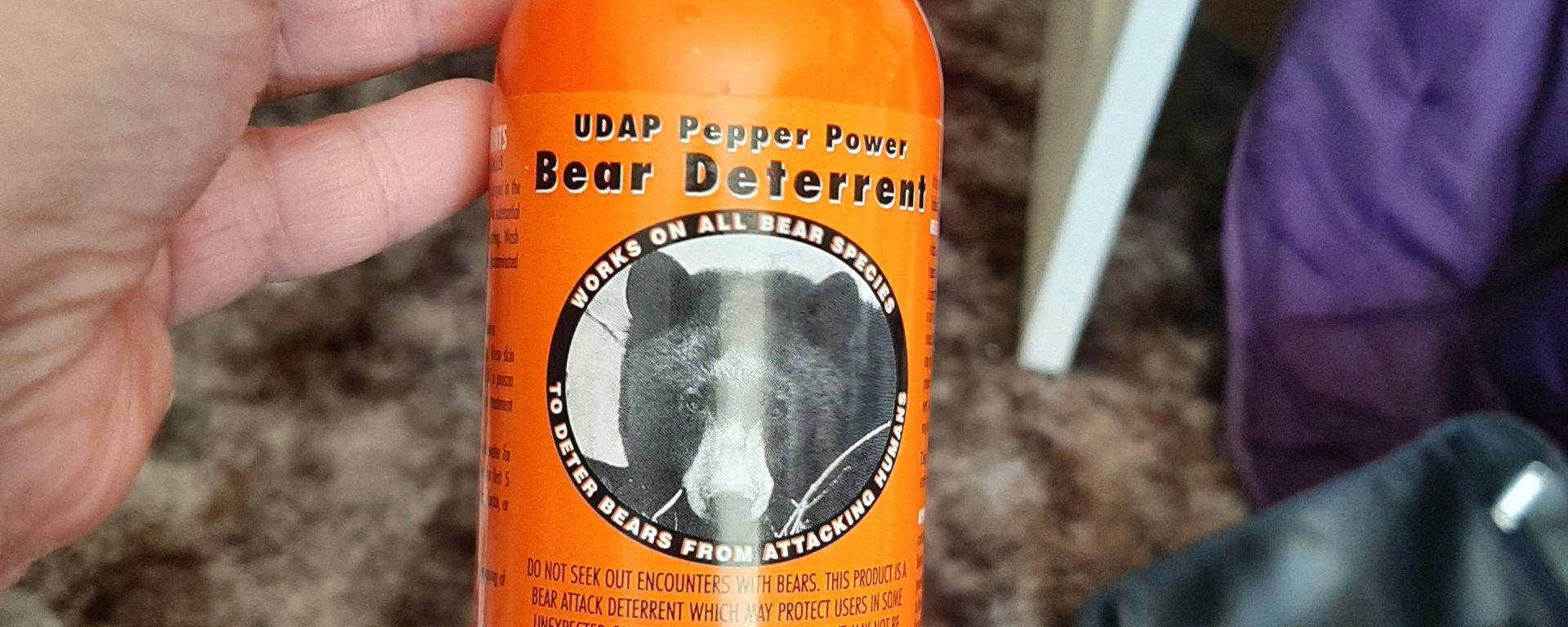 The only smart thing about what happened next was that I pointed the nozzle away from me. I pressed the trigger and a very loud, very large stream of pressurized liquid sprayed out and essentially attacked our potted lime tree. I released the trigger and glanced at the water bottle again, trying to figure out why the hell the contents were under pressure. That was when I finally registered the logo on the black sleeve. It said “UDAP Bear Spray” with a silhouette of a bear. That’s right. Not a water bottle, but bear spray. I sprayed BEAR SPRAY in my kitchen.